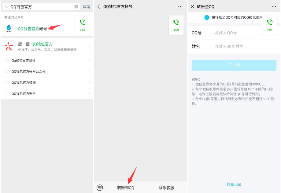 ①:在微信公众号搜QQ钱包